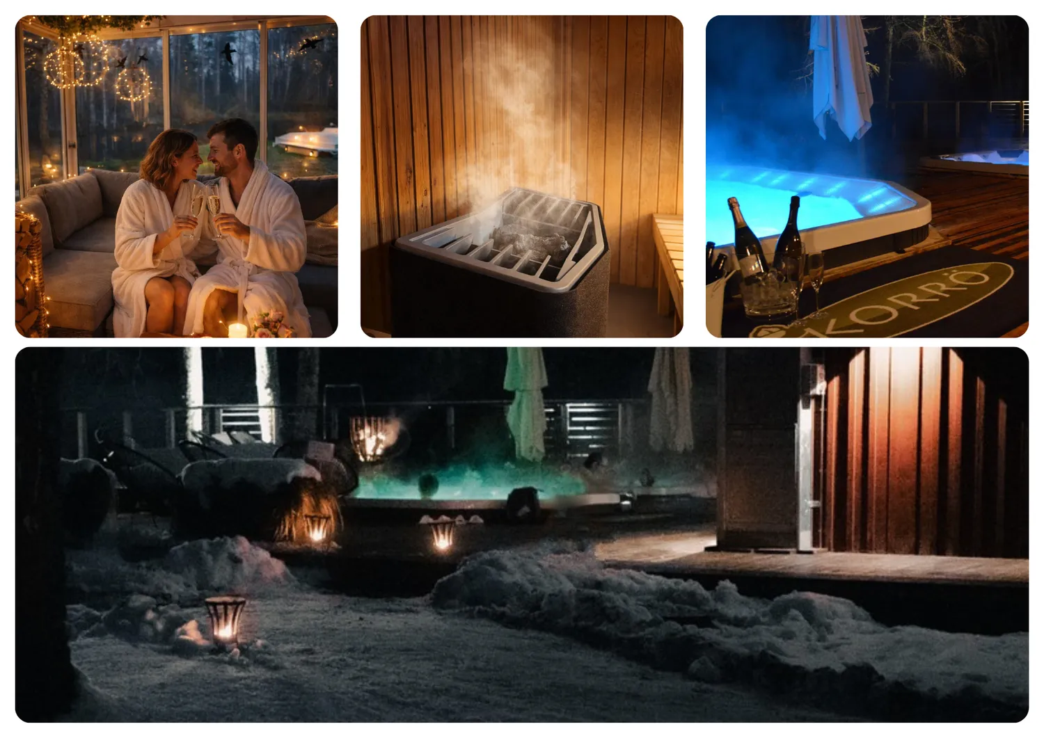Bada badtunna eller våra stora spabad & och koppla av i fantastisk miljö. På Korrö finns möjlighet att njuta av bad i varma & kalla källor och bastu längs med Ronnebyåns vackra åkant. Luta dig tillbaka och känn hur du varvar ner i vårt mysiga relaxrum medans elden sprakar.